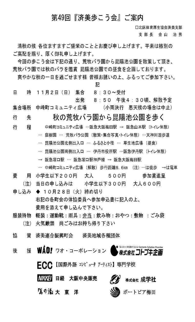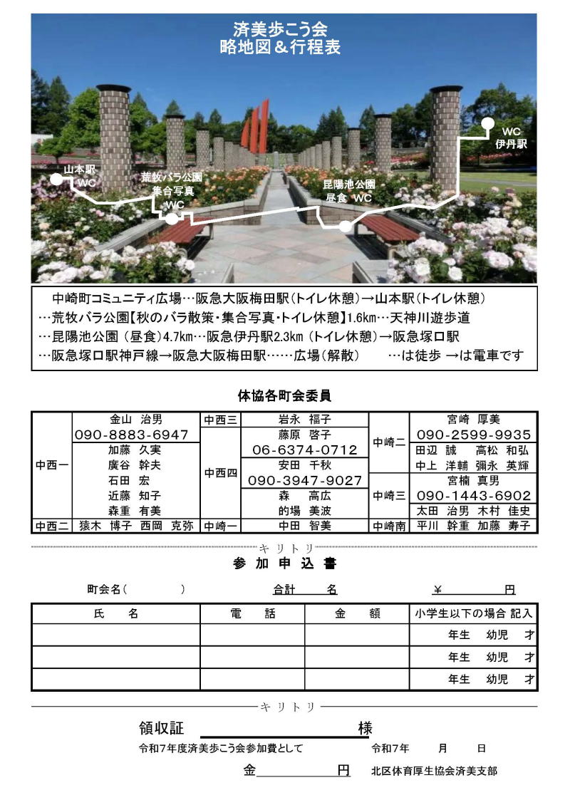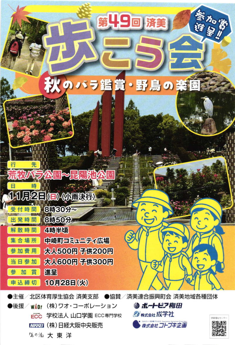 今年度は「済美歩こう会」が11月2日(日)に開催されます。 申込みは各町会の体協委員までお願いします。