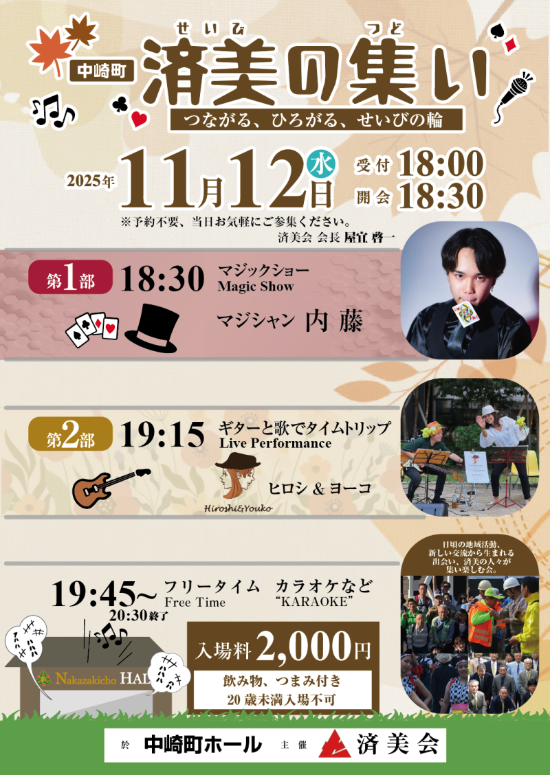 11月12日(水)に中崎ホールで『済美の集い』を開催します。是非皆さん来てください。